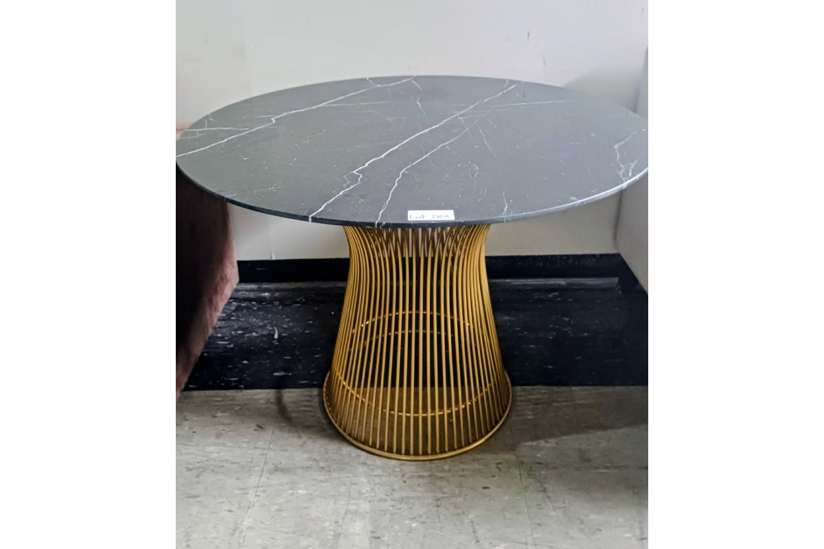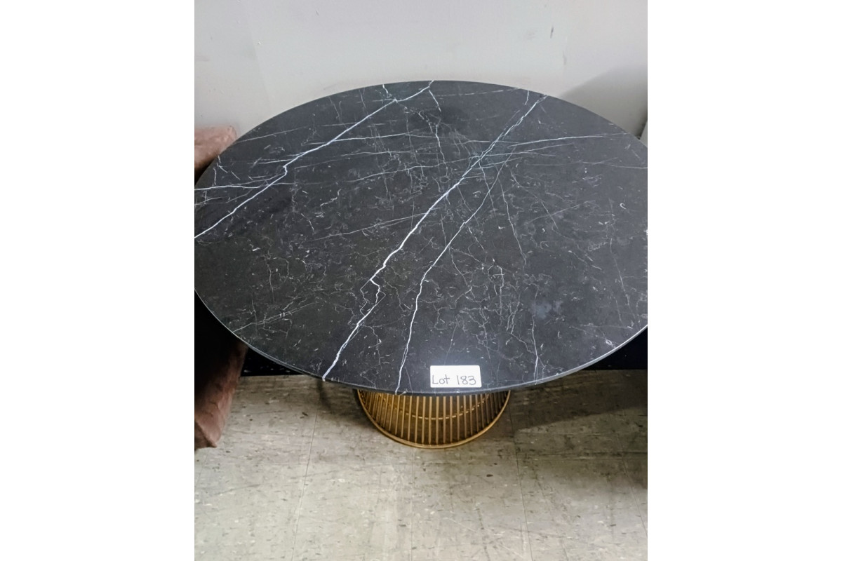 1 METRE ROUND BLACK MARBLE TOP TABLE WITH GOLD BASE