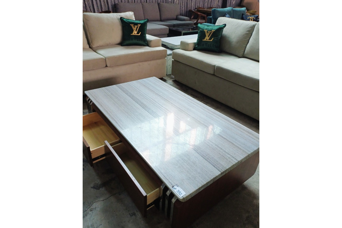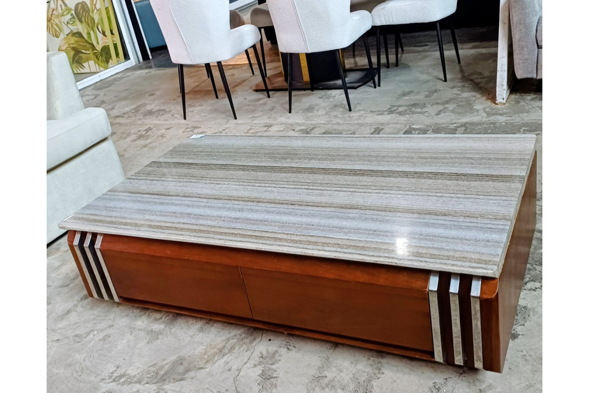 4 DRAWER MARBLE TOP COFFEE TABLE WITH SILVER TRIM