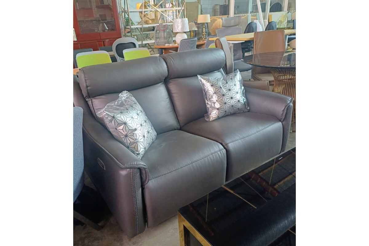 ANTHENA 2 SEATER LEATHER ELECTRIC RECLINING LOUNGE - VILLA ANTHRAZIT RRP$3550 (2443C426) 004-22-12-25