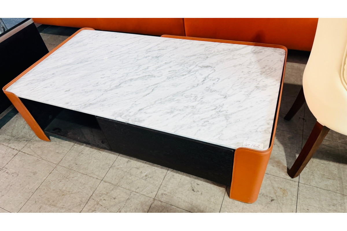 • COFFEE TABLE - ORANGE ANTI-SCRATCH LEATHER WITH MARBLE TOP (#877)