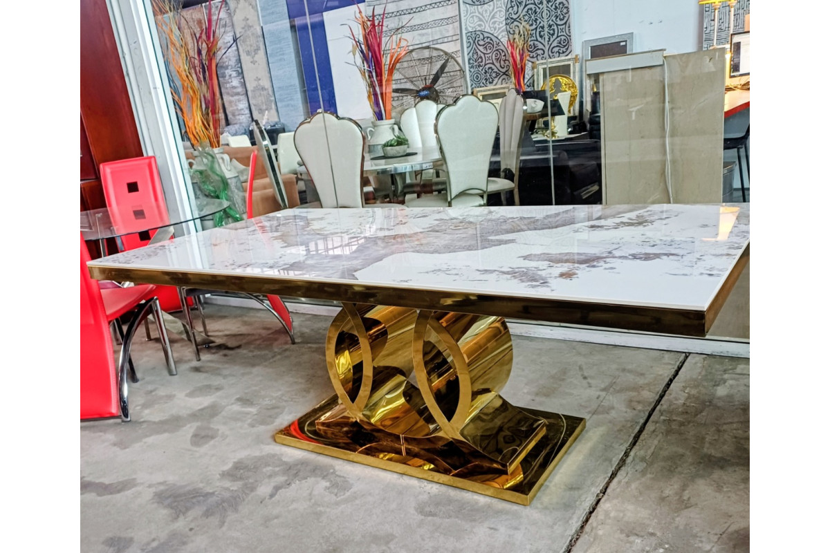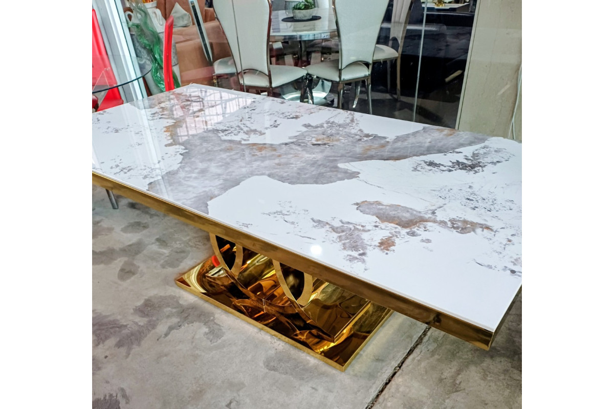 CHANEL DINING TABLE SEARED STONE TOP WITH GOLD FRAME