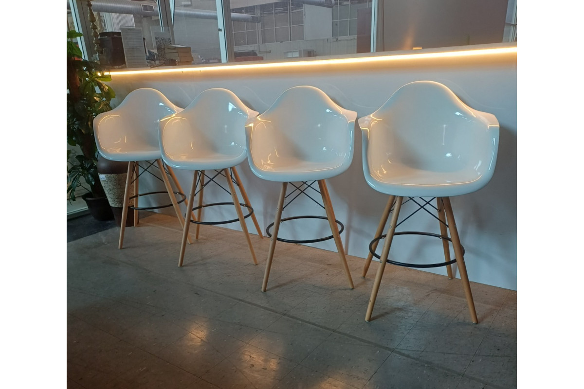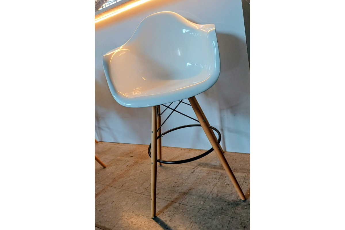 WHITE GLOSS BAR STOOL WITH TIMBER LEGS