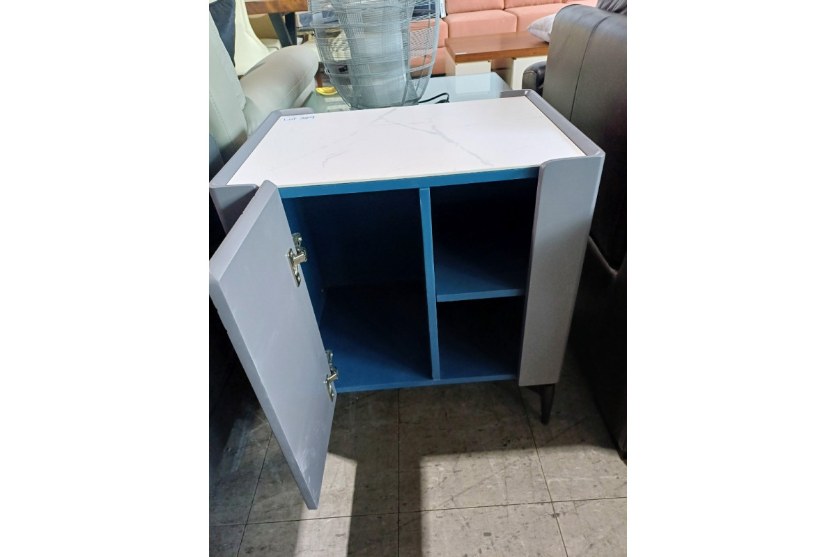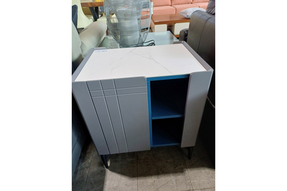 SIDE TABLE GLASS TOP MARBLE LOOK (#711)