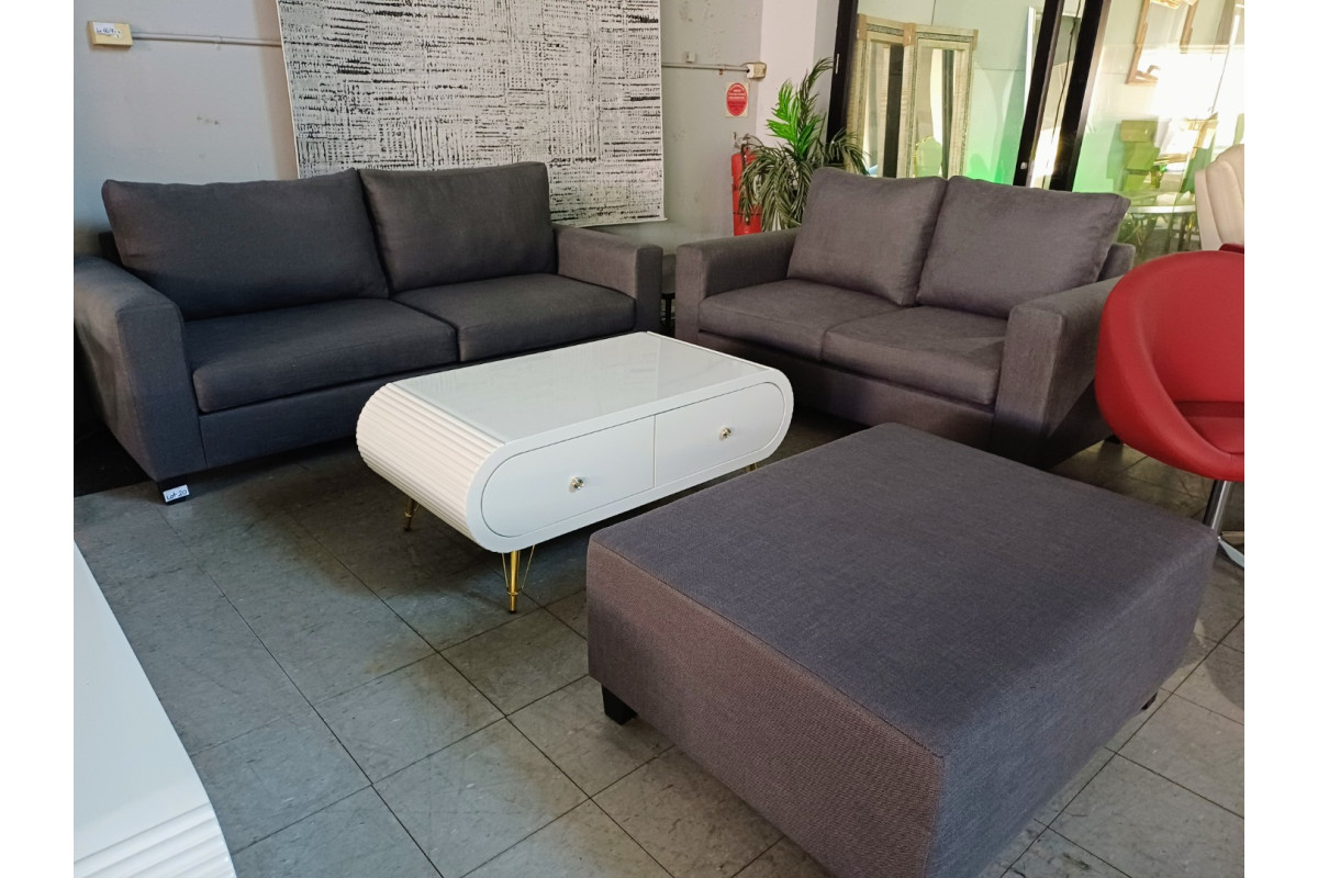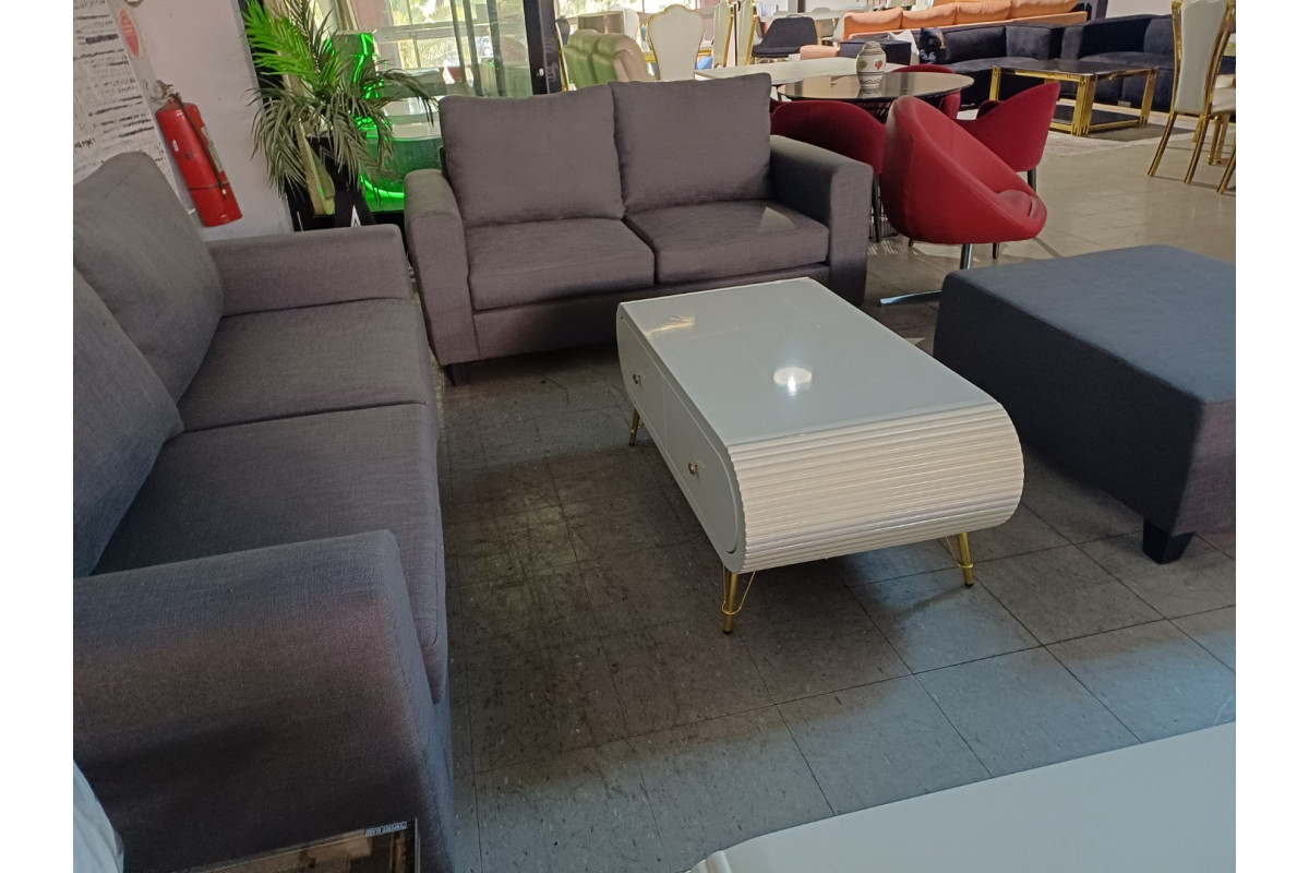 GREY FABRIC LOUNGE SUITE - 3 + 2.5 SEATER + OTTOMANGREY FABRIC LOUNGE SUITE - 3 + 2.5 SEATER + OTTOMAN