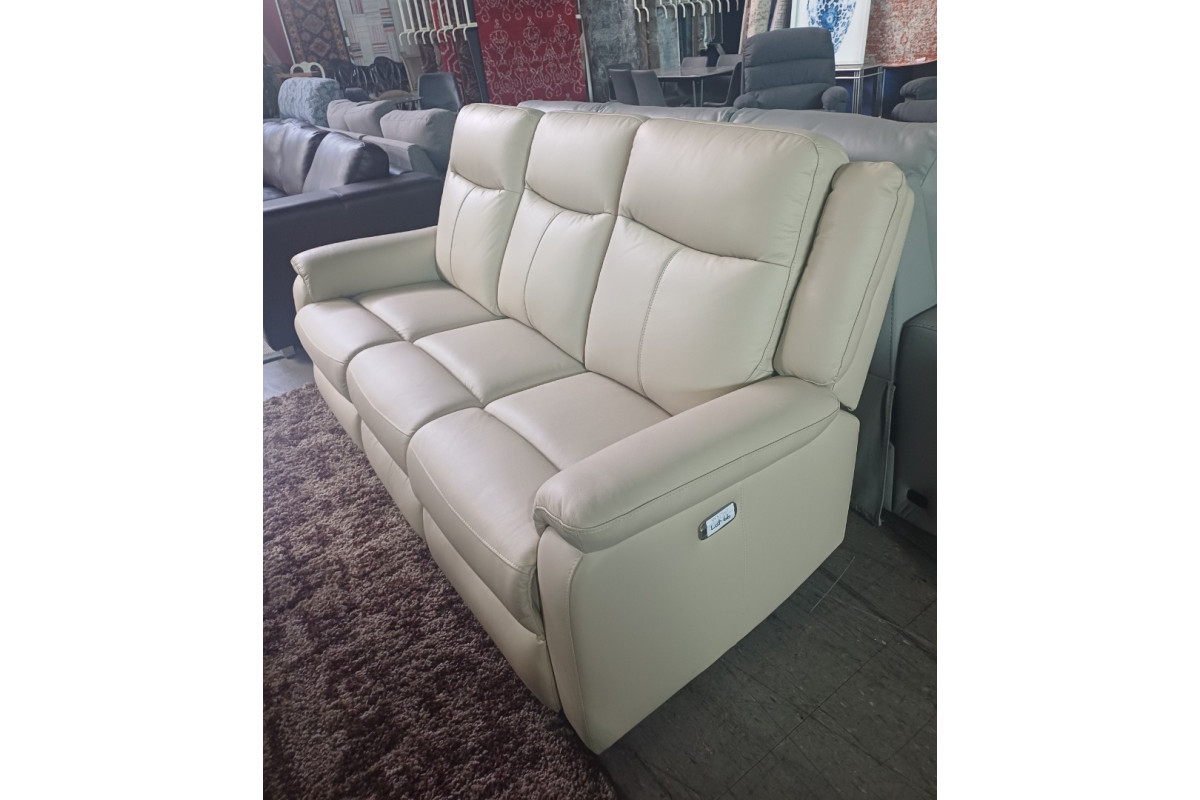 INDRA LEATHER 3 SEATER LOUNGE ELECTRIC RECLINING - VILLA PEARL RRP$2400 (018-03-07-25)2440C038