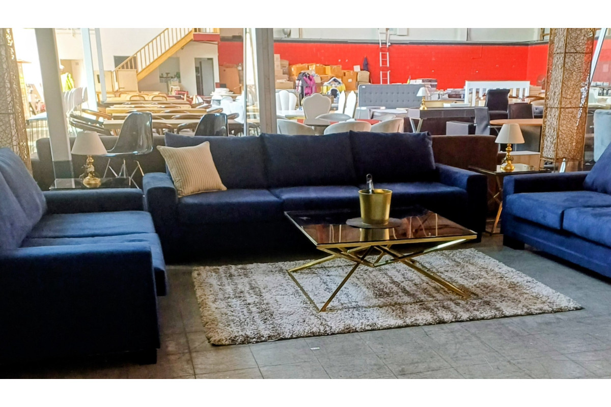 NAVY SUEDE SOFA SET 3.5 SEATER + 2.5 SEATER + 2.5 SEATERNAVY SUEDE SOFA SET 3.5 SEATER + 2.5 SEATER + 2.5 SEATER