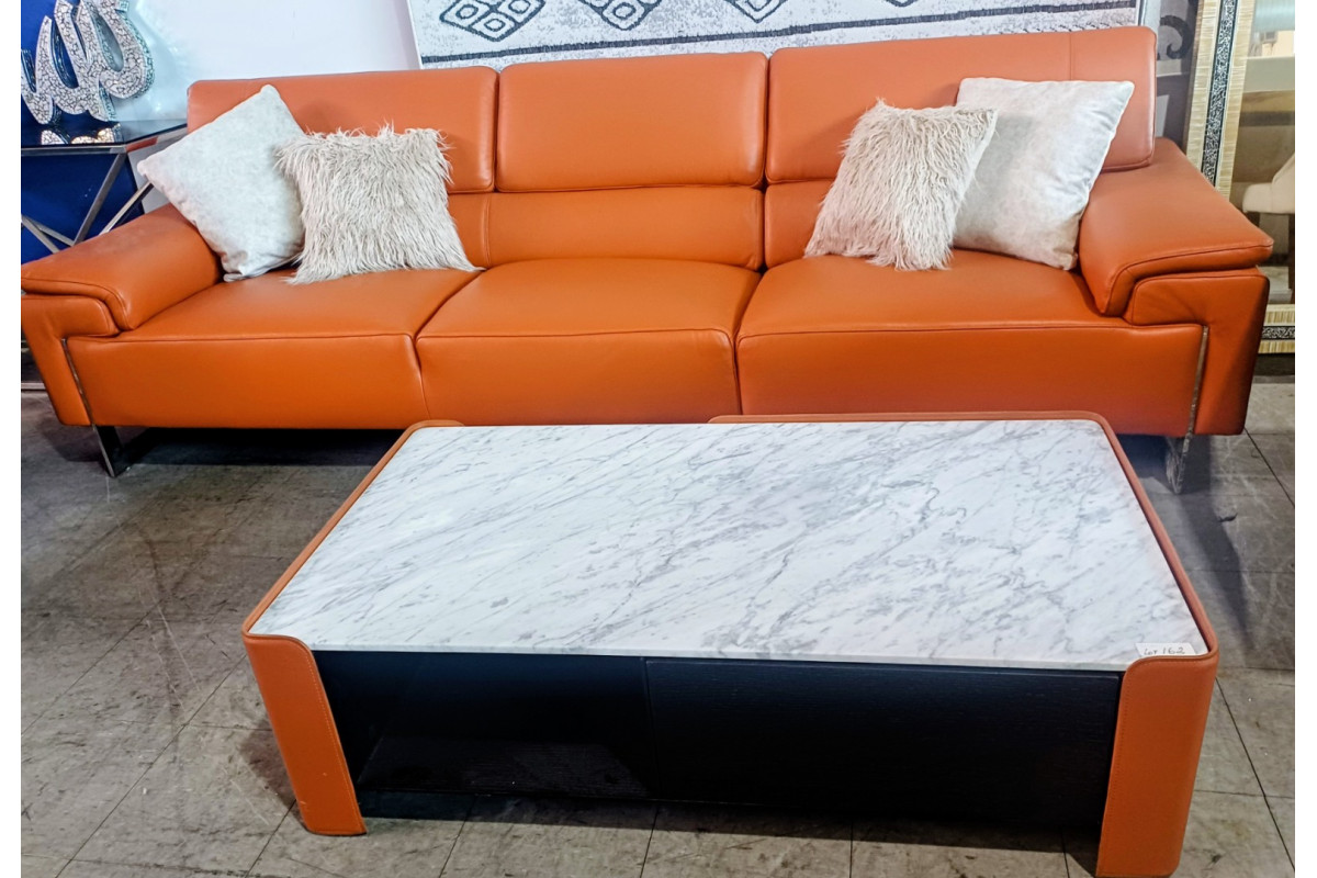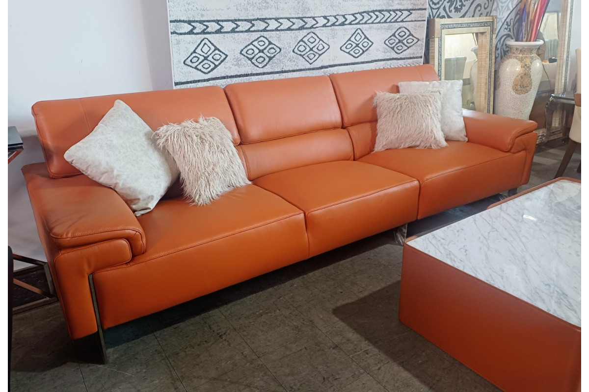 ORANGE 3 SEATER LEATHER LOUNGE (#S-009)