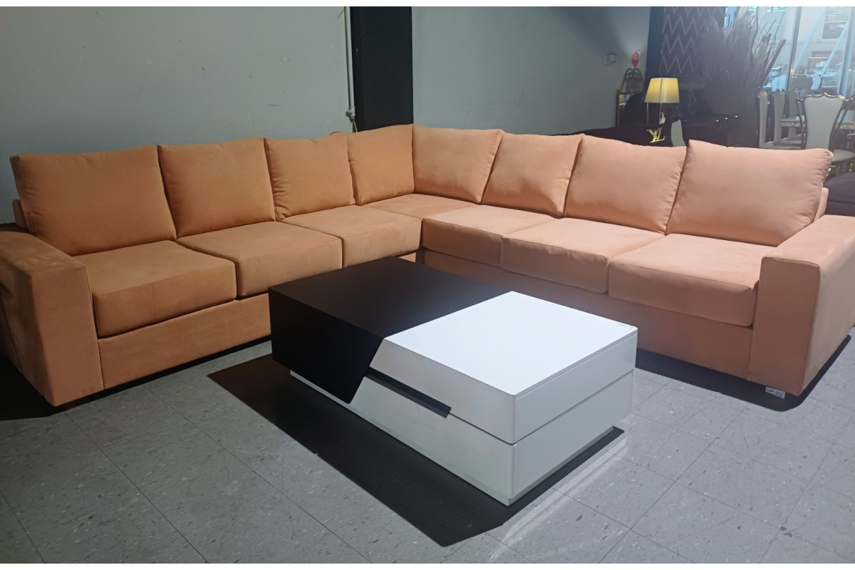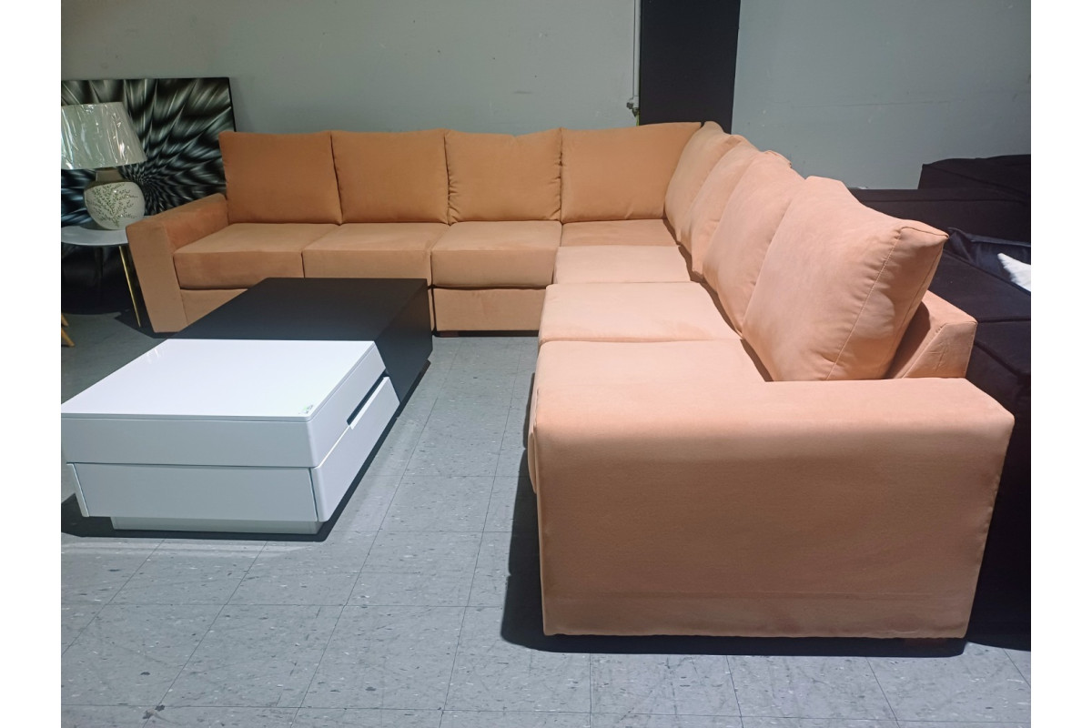 PEACH SUEDE 7 SEAT CORNER LOUNGE