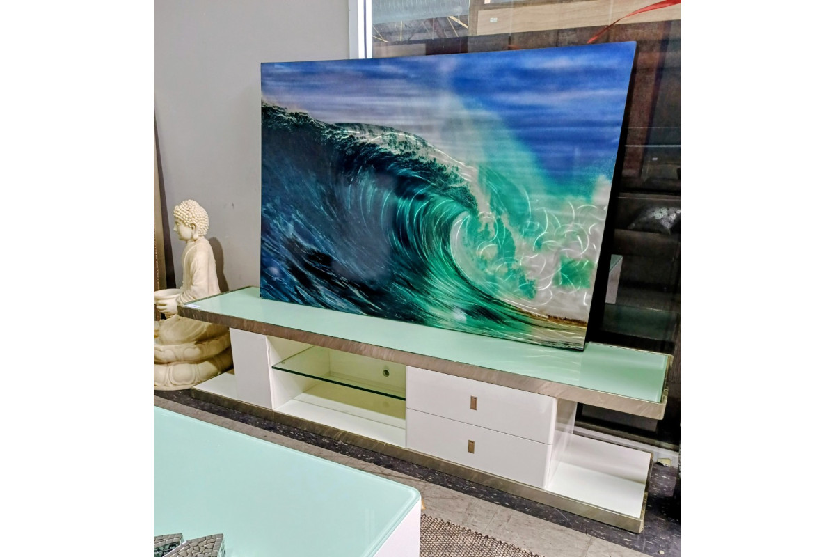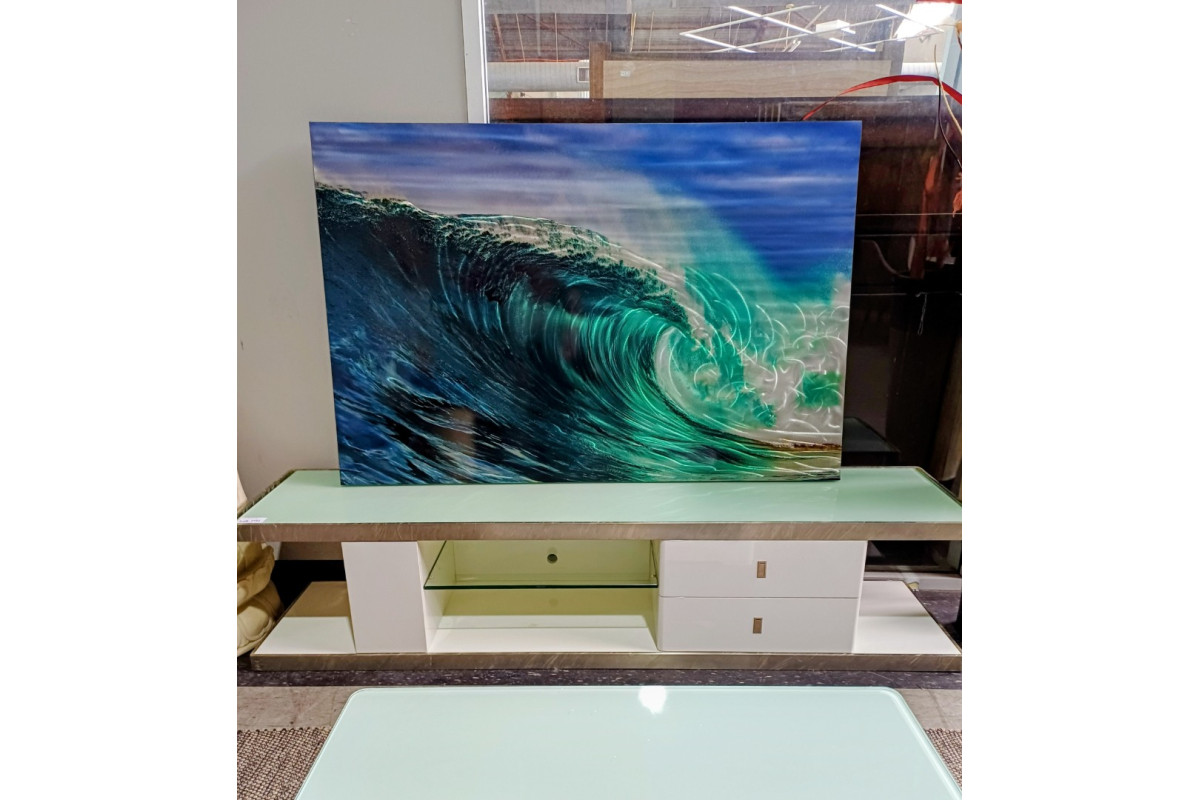 WHITE GLOSS/GLASS TV UNIT - 200CM (#302) SOLD AS IS